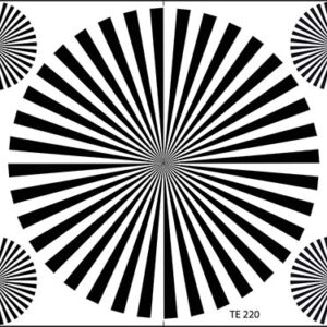 视窗测试卡TC156设计用于测量CCD相机的blooming(光晕)和smearing(漏光)效应。 透明度由具有白色(透明)区域的黑色区域组成。 透明区域具有图片区域的1%,由白色箭头标记。