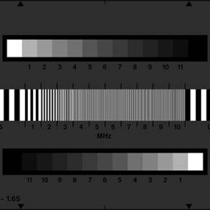 HDTV灰度测试卡用于摄像机的色调再现评估,两个13度灰阶条按相反的方向排列在灰色背景(D=0.75)中,灰阶条以对数分等级。